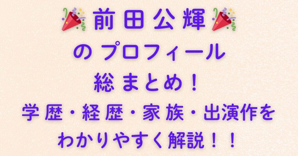 🎉前田公輝🎉のプロフィール総まとめ!学歴・経歴・家族・出演作をわかりやすく解説!!