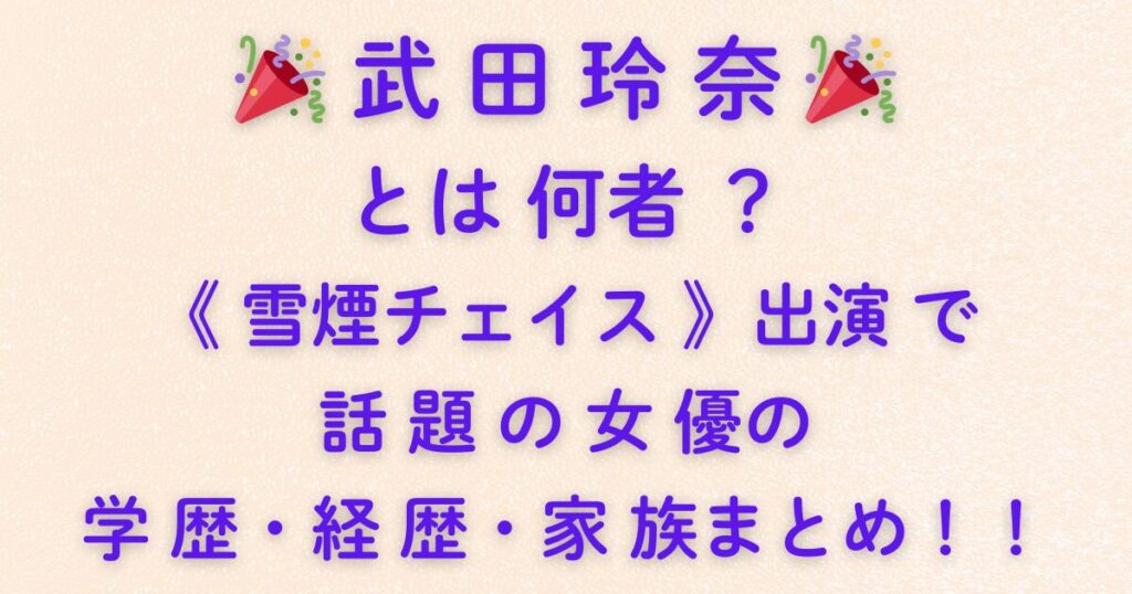 🎉武田玲奈🎉とは何者?《雪煙チェイス》出演で話題の女優の学歴・経歴・家族まとめ!!