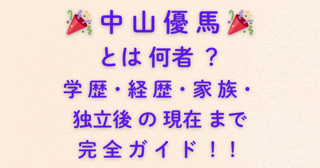 🎉中山優馬🎉とは何者?学歴・経歴・家族・独立後の現在まで完全ガイド!!