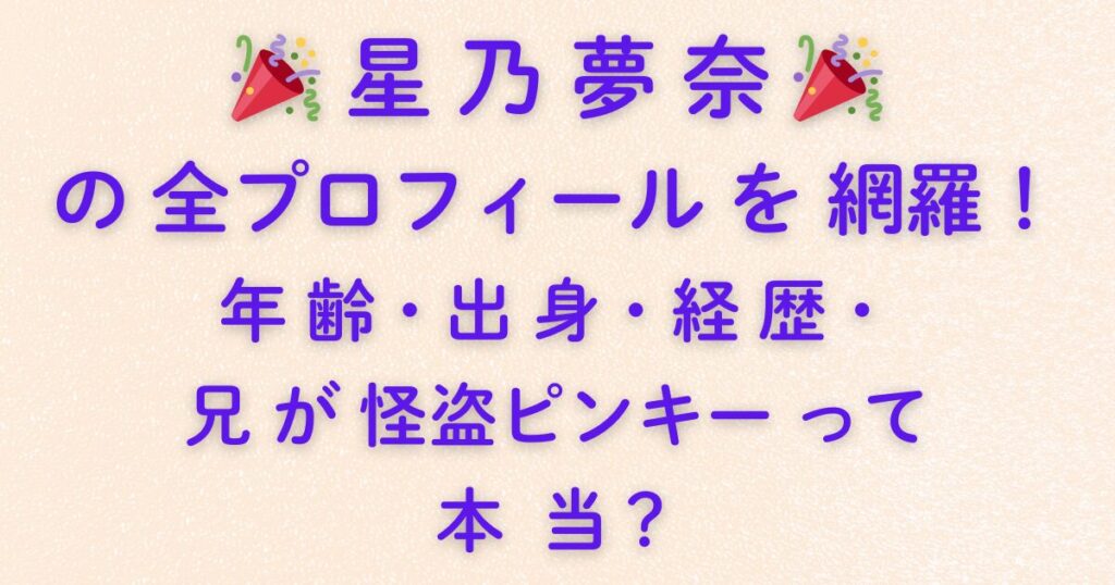 🎉星乃夢奈🎉の全プロフィールを網羅!年齢・出身・経歴・兄が怪盗ピンキーって本当?
