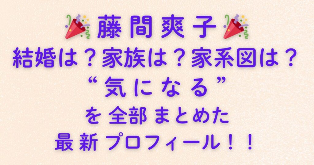🎉藤間爽子🎉結婚は?家族は?家系図は?“気になる”を全部まとめた最新プロフィール!!