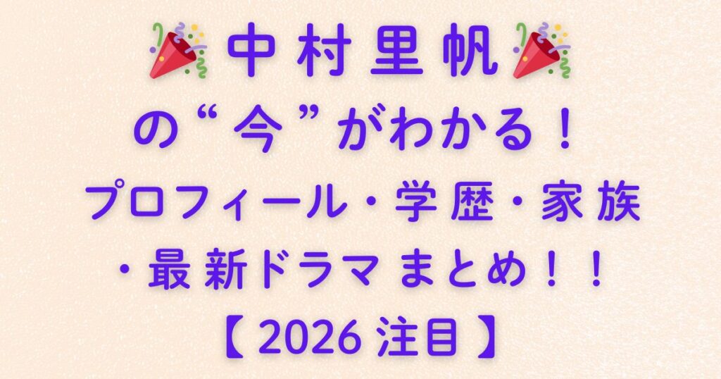 🎉中村里帆🎉の“今”がわかる!プロフィール・学歴・家族・最新ドラマまとめ【2026注目】
