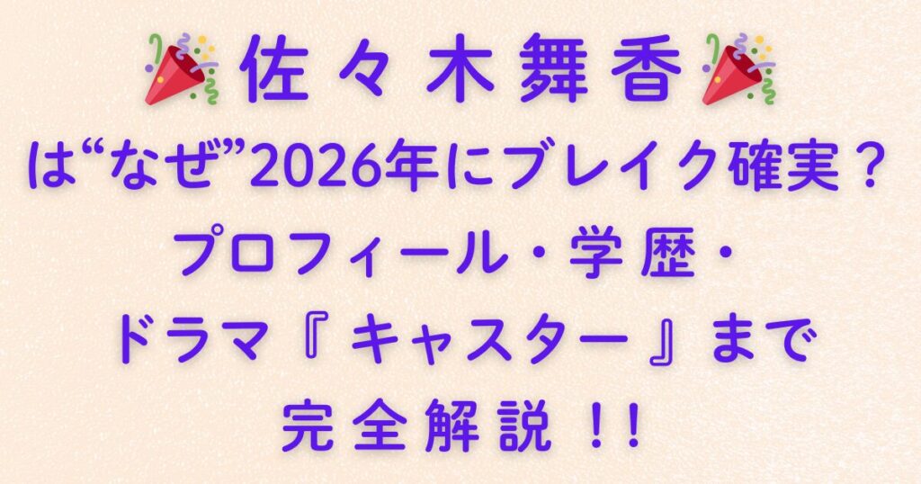 🎉佐々木舞香🎉は“なぜ”2026年にブレイク確実?プロフィール・学歴・ドラマ『キャスター』まで完全解説!!