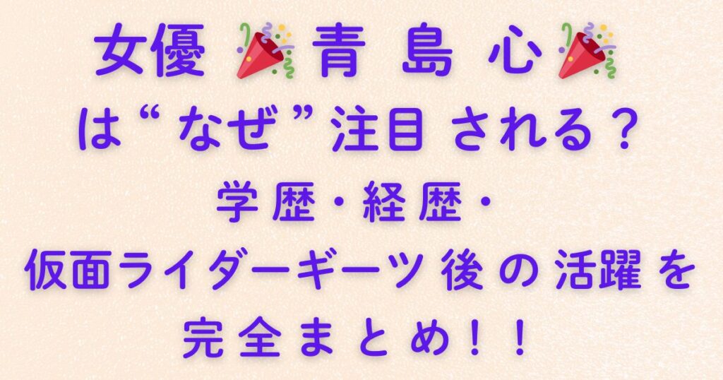 女優 🎉青島心🎉 はなぜ注目される?学歴・経歴・仮面ライダーギーツ後の活躍を完全まとめ!!