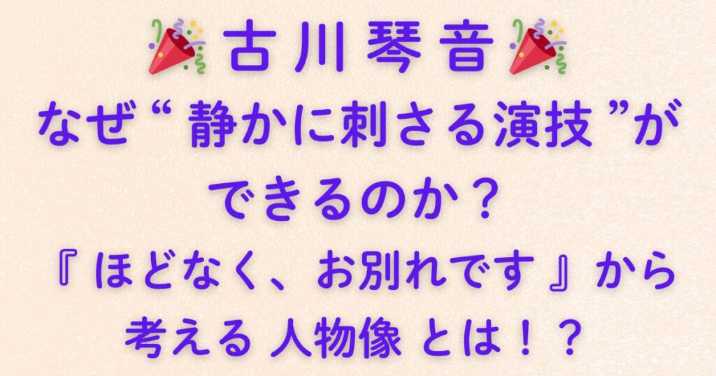 🎉 古川琴音 🎉 はなぜ“静かに刺さる演技”ができるのか?『ほどなく、お別れです』から考える人物像とは!?