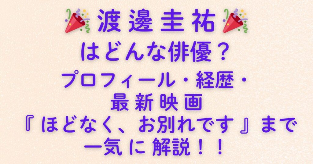 🎉 渡邊圭祐 🎉 はどんな俳優?プロフィール・経歴・最新映画『ほどなく、お別れです』まで一気に解説!!