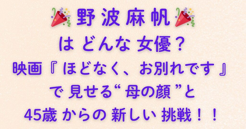 🎉 野波麻帆 🎉 はどんな女優?映画『ほどなく、お別れです』で見せる“母の顔”と45歳からの新しい挑戦!!
