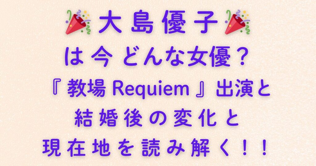 🎉 大島優子 🎉 は今どんな女優?『教場 Requiem』出演と結婚後の変化と現在地を読み解く!!