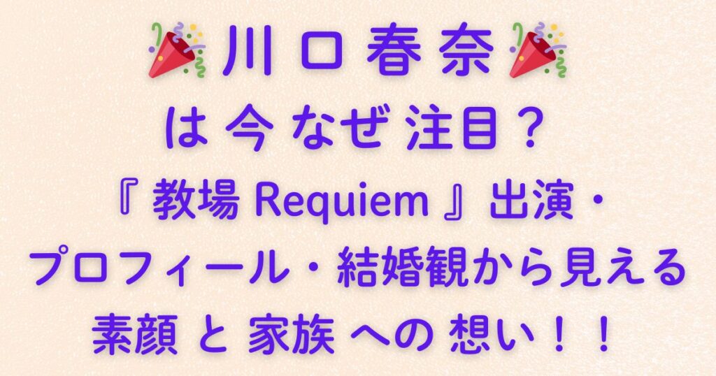 🎉 川口春奈 🎉 は今なぜ注目?『教場 Requiem』出演・プロフィール・結婚観から見える素顔と家族への想い!!