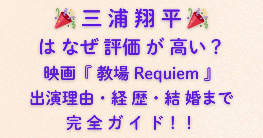 🎉 三浦翔平 🎉 はなぜ評価が高い?映画『教場 Requiem』出演理由・経歴・結婚まで完全ガイド!!