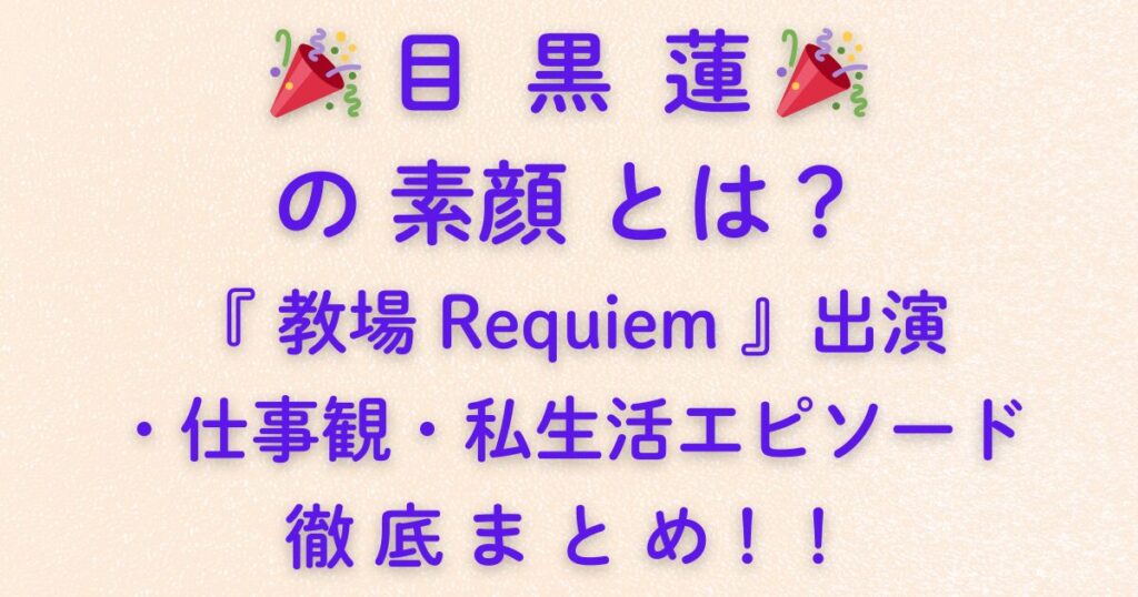 🎉 目黒蓮 🎉 の素顔とは?『教場 Requiem』出演・仕事観・私生活エピソード徹底まとめ!!