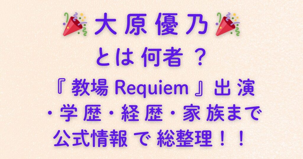 🎉 大原優乃 🎉 とは何者?『教場 Requiem』出演・学歴・経歴・家族まで公式情報で総整理!!