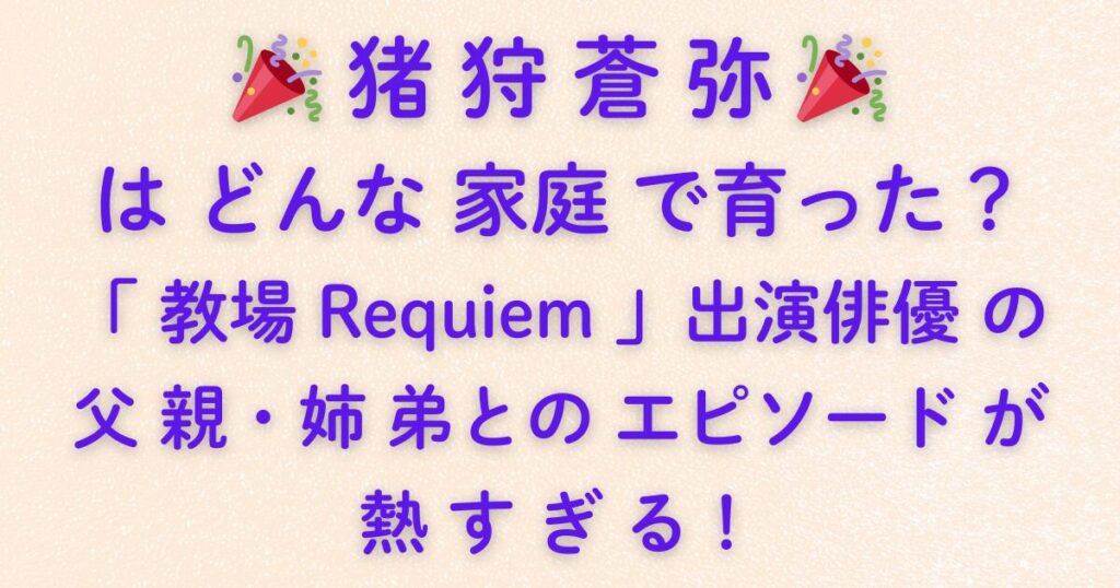 🎉 猪狩蒼弥 🎉 はどんな家庭で育った?「教場 Requiem」出演俳優の父親・姉弟とのエピソードが熱すぎる!