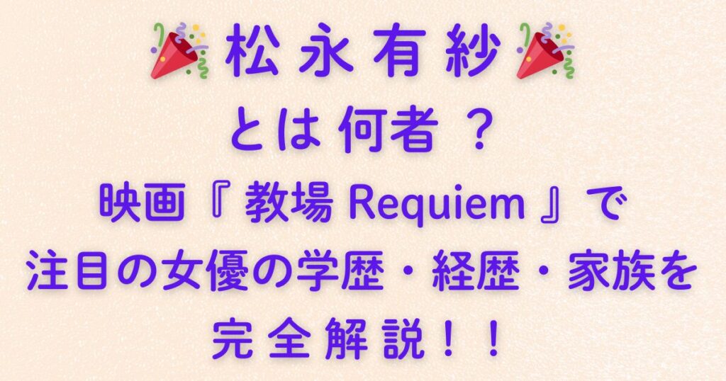 🎉 松永有紗 🎉 とは何者?映画『教場 Requiem』で注目の女優の学歴・経歴・家族を完全解説!!