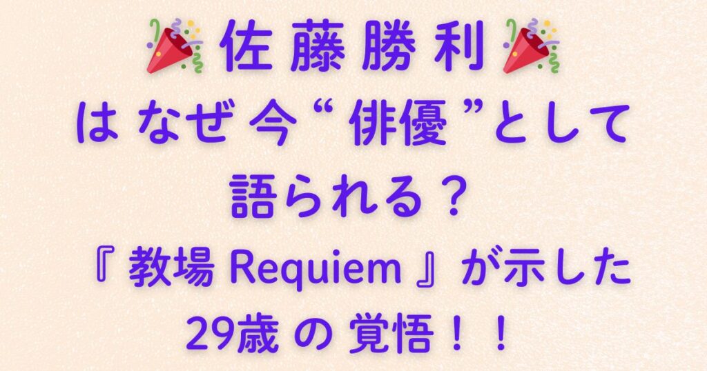 かつては「国宝級イケメン」「センターアイドル」として語られることが多かった佐藤勝利さん。 そんな彼が今、“俳優・佐藤勝利”として語られる機会が確実に増えています。 その象徴とも言える作品が、木村拓哉さん主演の映画『教場 Requiem』です。 警察学... -