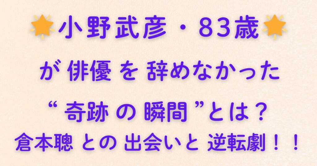 🌟小野武彦・83歳🌟が俳優を辞めなかった“奇跡の瞬間”とは?倉本聰との出会いと逆転劇!!