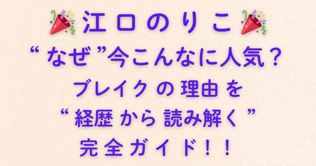 🎉江口のりこ🎉は“なぜ”今こんなに人気?ブレイクの理由を“経歴から読み解く”完全ガイド!!