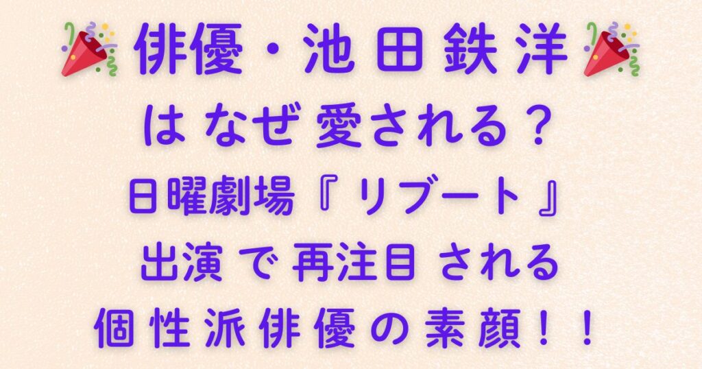 🎉 俳優・池田鉄洋 🎉 はなぜ愛される?日曜劇場『リブート』出演で再注目される個性派俳優の素顔!!