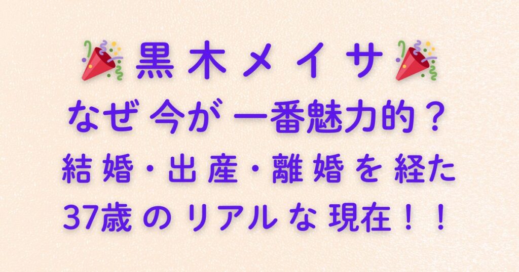 🎉 黒木メイサ 🎉 はなぜ今が一番魅力的?結婚・出産・離婚を経た37歳のリアルな現在!!