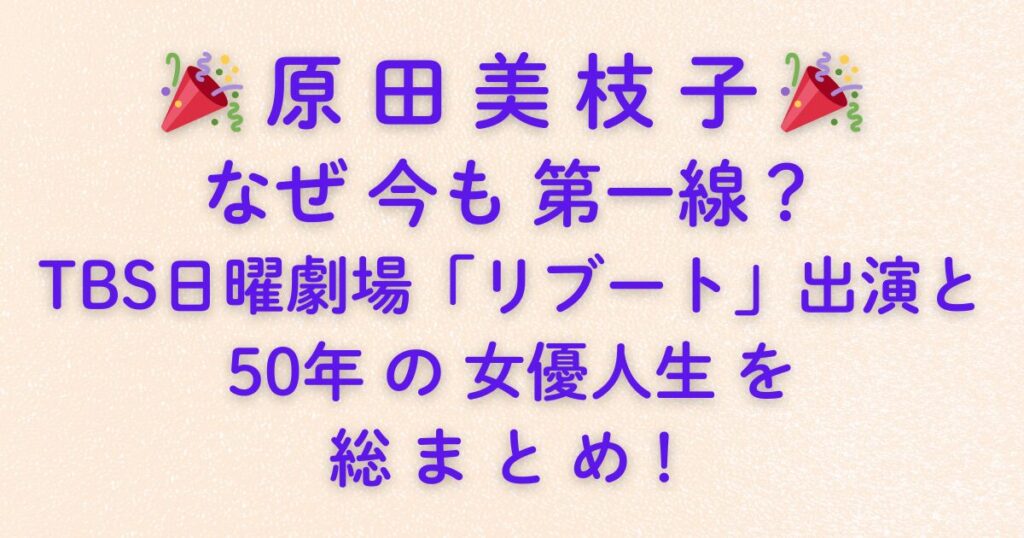 🎉 原田美枝子 🎉 はなぜ今も第一線?TBS日曜劇場「リブート」出演と50年の女優人生を総まとめ!