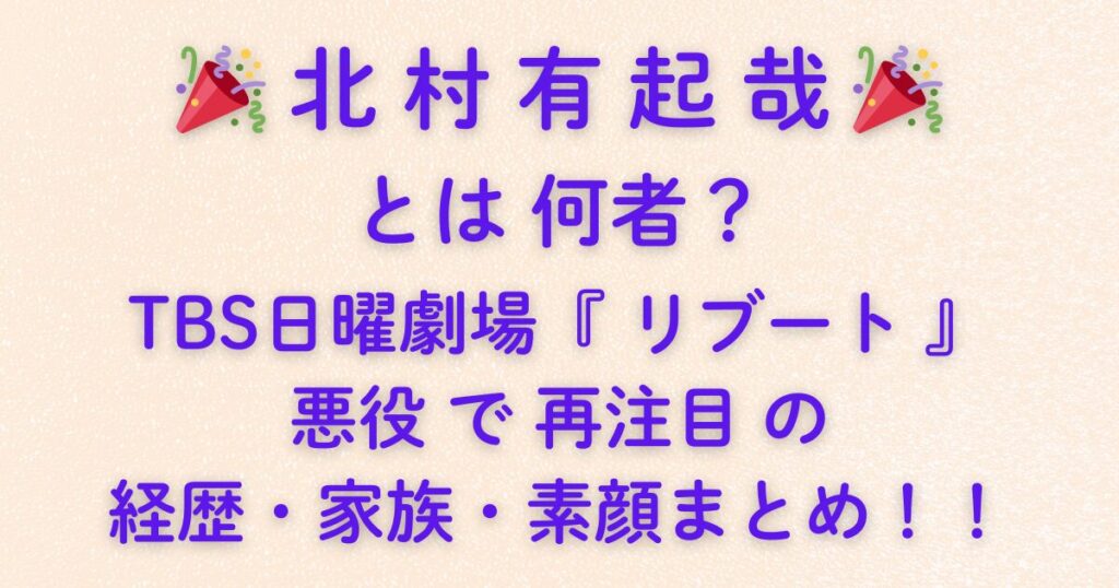 🎉 北村有起哉 🎉 とは何者?TBS日曜劇場『リブート』悪役で再注目の経歴・家族・素顔まとめ!!