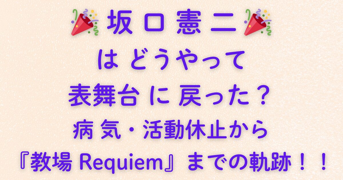 坂口憲二さんが再び表舞台に戻った理由は、「無理をして戻りたかったから」ではなく、自分の人生と丁寧に向き合った結果、自然とたどり着いた場所が『教場 Requiem』だったからなのかもしれません。