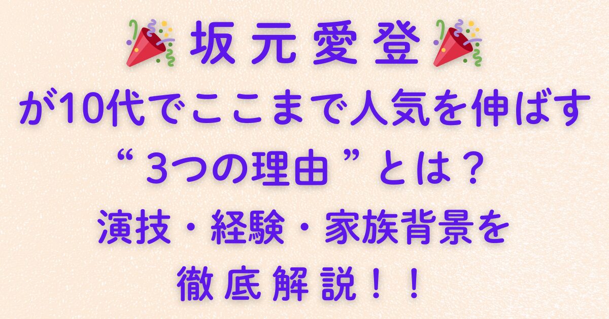 🎉坂元愛登🎉が10代でここまで人気を伸ばす“3つの理由”とは?演技・経験・家族背景を徹底解説!!