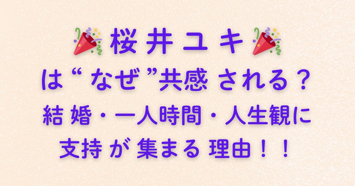 🎉 桜井ユキ 🎉 は“なぜ”共感される?結婚・一人時間・人生観に支持が集まる理由!!