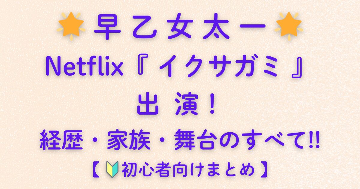 本記事では、早乙女太一さんのプロフィール・経歴・家族情報・舞台の魅力・最新作『イクサガミ』の役どころまで全部まとめて解説。