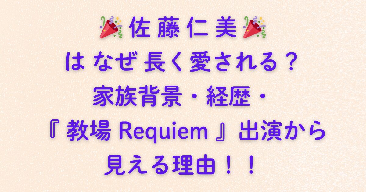 🎉 佐藤仁美 🎉 はなぜ長く愛される?家族背景・経歴・『教場 Requiem』出演から見える理由!!