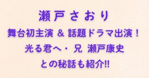 今回は、最新ドラマ情報から結婚・家族、故郷の活動、芸能界での歩みまで、瀬戸康史さんの“今”をとことん深掘りしながら、わかりやすくご紹介します!