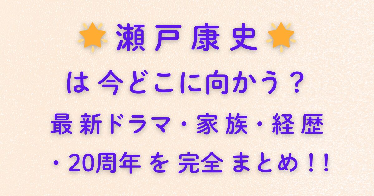 🌟瀬戸康史🌟は今どこに向かう?最新ドラマ・家族・経歴・20周年を完全まとめ!!