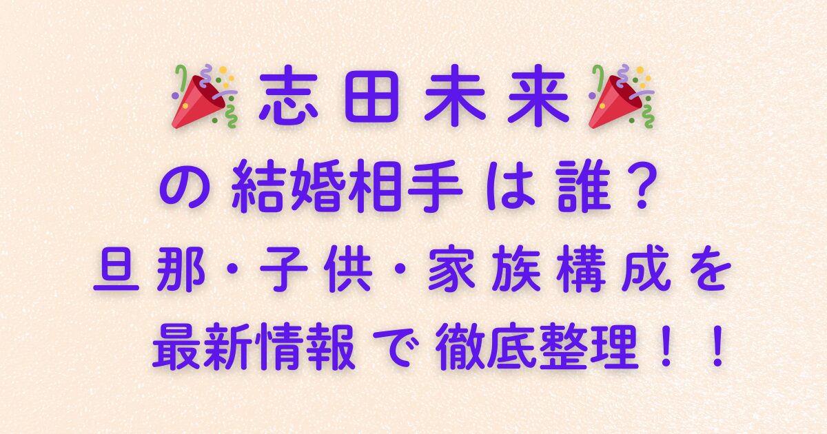 本記事では、志田未来さんの結婚相手・家庭・家族構成**について、わかりやすく丁寧に整理してお届けします。