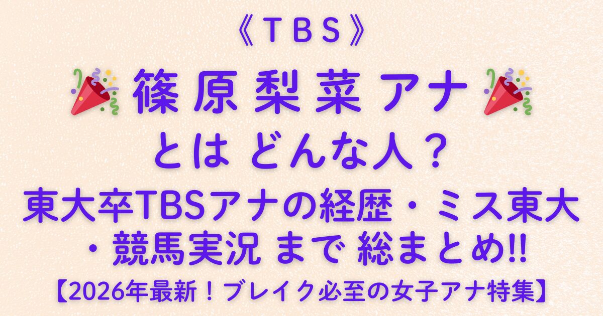 篠原梨菜アナウンサーは、「東大卒」「ミス東大」「女性初の競馬実況」といった華やかな肩書きを持ちながら、早朝ラーメンを豪快にすする親しみやすさで人気を集めるTBSの注目アナです。