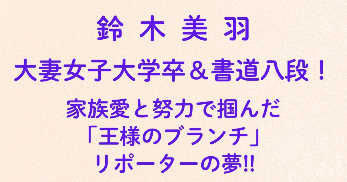 この記事では、そんな鈴木美羽さんの学歴・家族愛・リポーター就任までの軌跡をたっぷりとご紹介します!