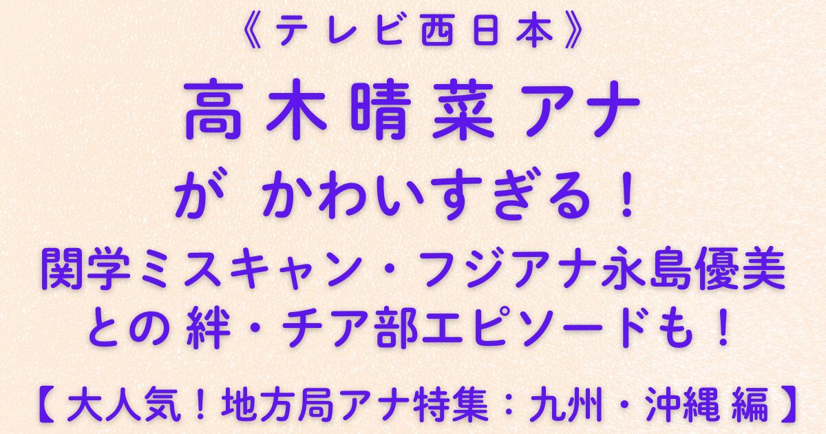 テレビ西日本(TNC)の高木晴菜(たかぎ・はるな)アナウンサーは、明るい笑顔とキレのあるトークで人気急上昇中!